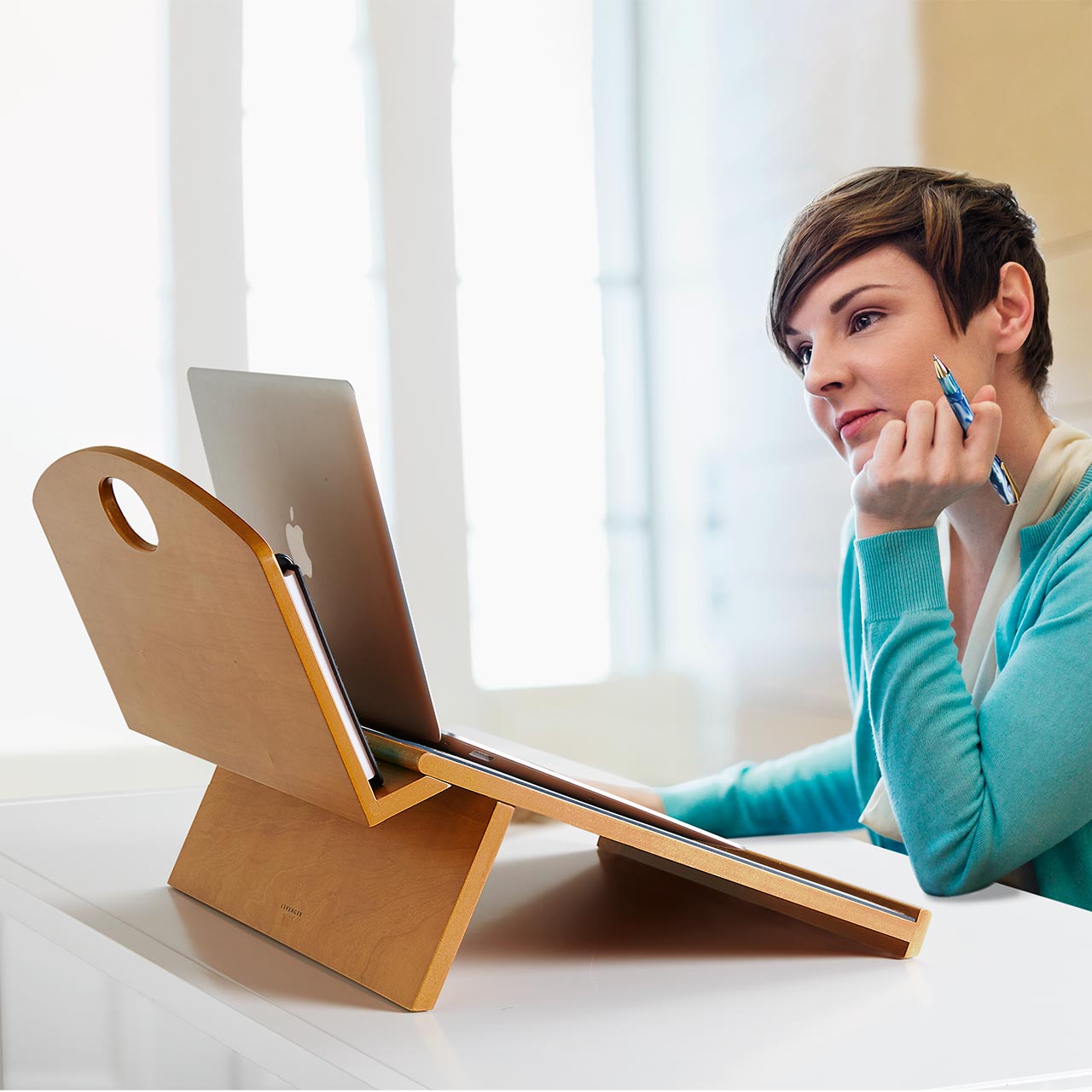 For a thousand years writers, artists, and architects have produced their works at inclined surfaces. Today our tools have changed but human physiology has not—we still are more comfortable and productive employing this ancient advantage. As one customer wrote about our Editor’s Desk, “My neck thanks you!”
